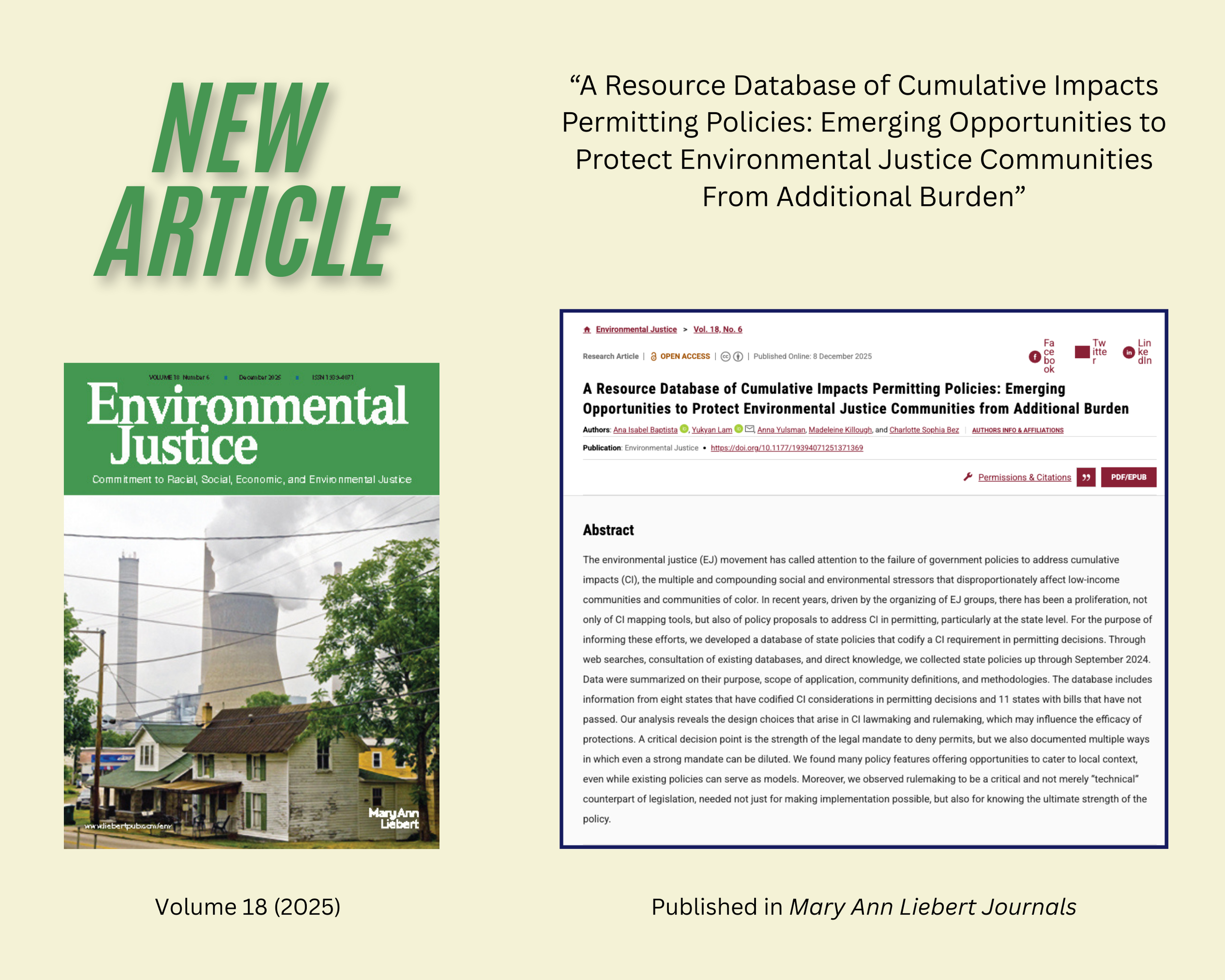 As states respond to environmental justice organizing, cumulative impacts policies are increasingly being proposed to address the overlapping harms faced by low-income communities and communities of color. This article analyzes enacted and proposed state laws that incorporate cumulative impacts into permitting decisions, highlighting key design choices, especially legal mandates and rulemaking, that determine whether these policies deliver meaningful protections for EJ communities.